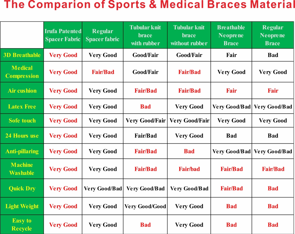 • Neoprene Free, No Smell, Latex Free, Hypo-allergenic. Made by 3D breathable, soft touch, elastic Patented spacer fabric. Inside brace is quick dry fabric and keep your skin dry.? 24 hours comfort use.
